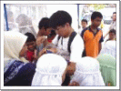 そのテント付近で、地元大学生が寺小屋式の教室を